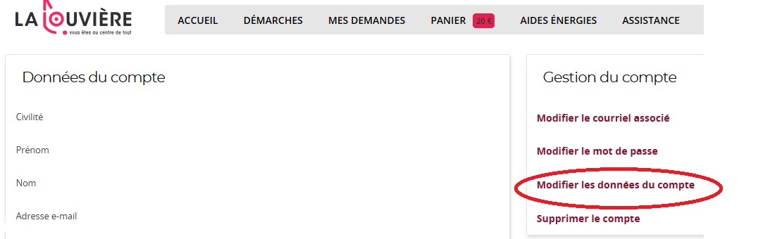 - Sur l'écran suivant , sélectionner "Modifier les données du compte"